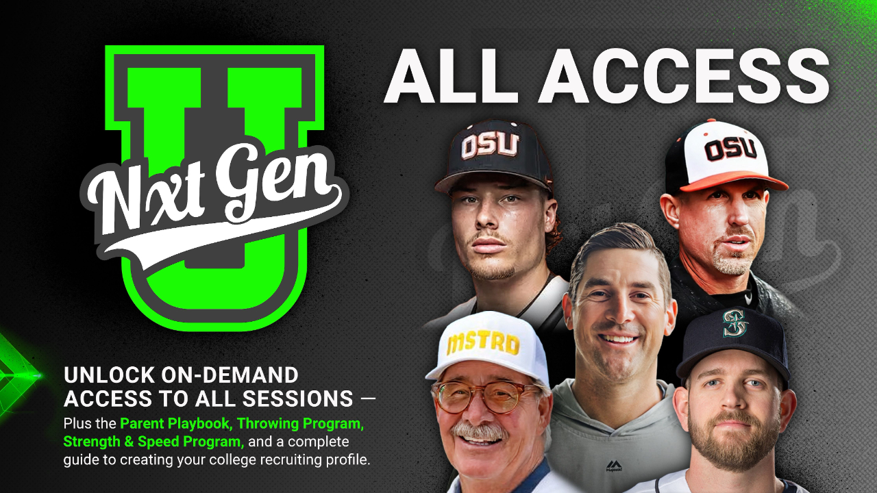 Unlock on-demand access anytime to all 25+ NxtGen U expert sessions. Learn from MLB players, college coaches, recruiters, and specialists on development, mindset, and recruiting. Sessions only — no Playbook, no bonus content, and no training programs included.